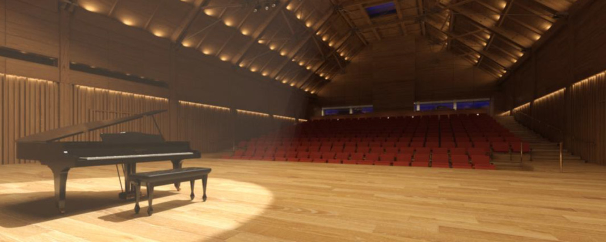 The New Performing Arts Centre is a stunning, new building providing entirely new facilities for Music, a new home for Drama in the converted existing Music School, and a physical link to the Art Department. Joining all three departments is a generous foyer, providing prominent display space for art and a central meeting place for the whole school community.